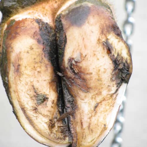 Treatment: Corrective trimming; filling deep cracks with hoof repair materials; improving nutrition.