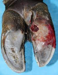 Caused by weakening of the white line (the junction between the sole and hoof wall), leading to separation and infection by bacteria or fungi.